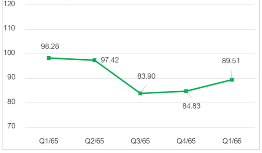 การผลิตเหล็กและเหล็กกล้าในไตรมาสที่ 1 ปี 2566 ดัชนีผลผลิตอุตสาหกรรมมีค่า 89.5 หดตัวร้อยละ 8.9 จากไตรมาสเดียวกันของปีก่อน แต่ขยายตัวร้อยละ 5.6 จากไตรมาสที่ผ่านมา